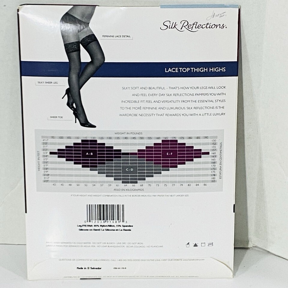 NEW Hanes Silk Reflections Lace Top Thigh Highs AB Barely Black Sandalfoot
