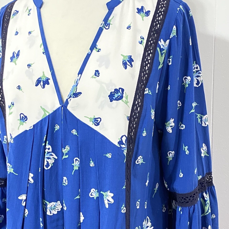 NEW Matilda Jane Women’s Dress Size L Blue White FLORAL Rayon FULL A-Line FLOWY