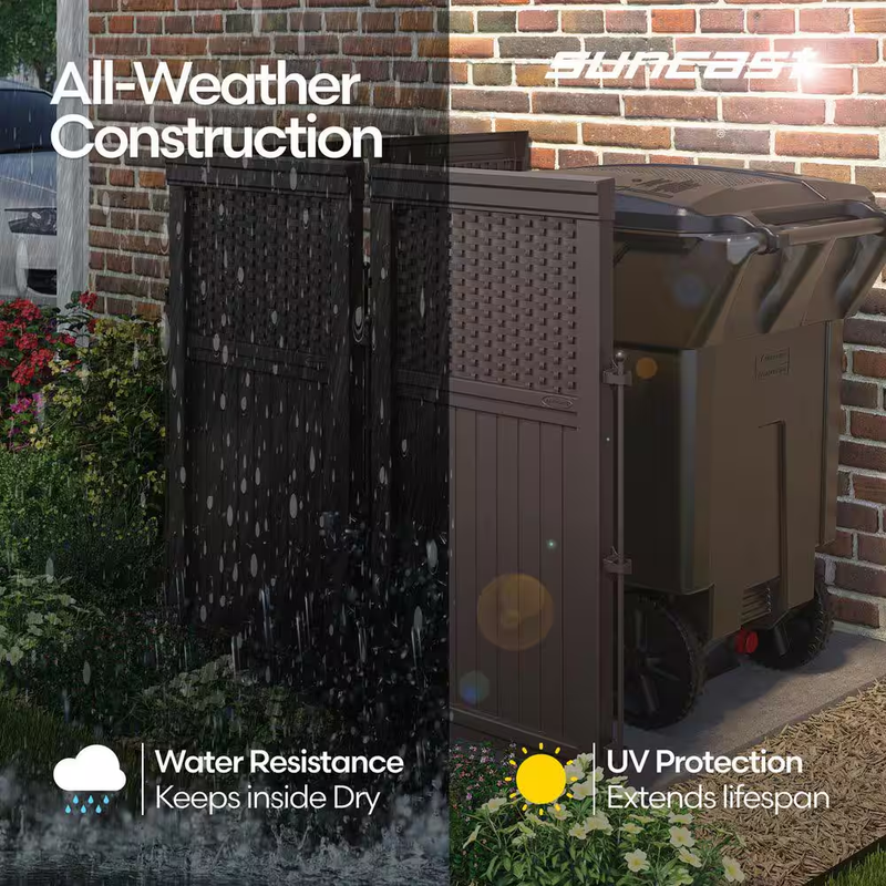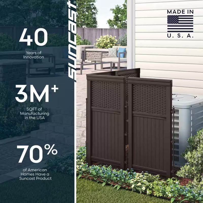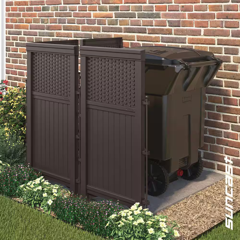 Hides trash cans, pool equipment or air conditioners