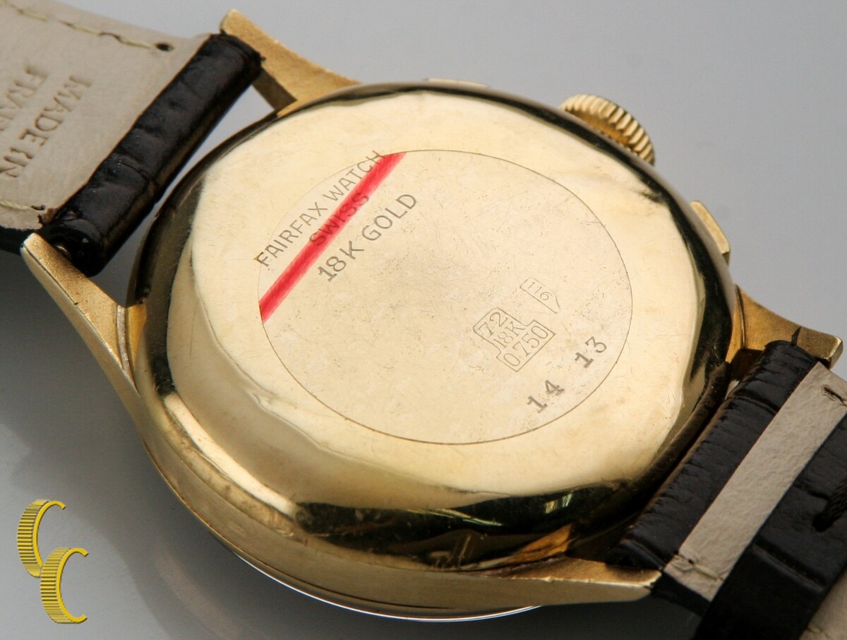 Vintage Hombres Cronografo Fairfax 18K Oro Amarillo Estuche Con / Sub Esferas