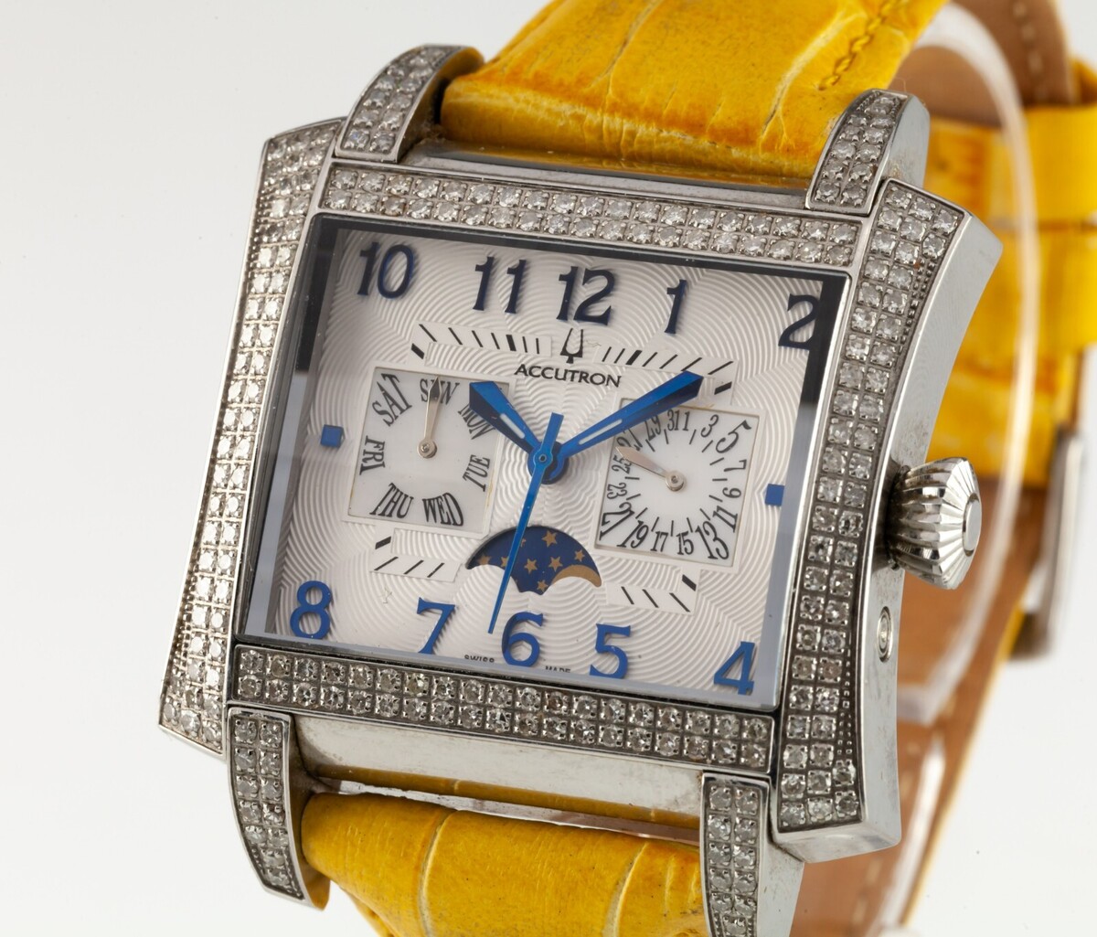 Accutron Innsbruck Acero Inoxidable Hombres Cuarzo Fase Lunar Reloj Cronógrafo