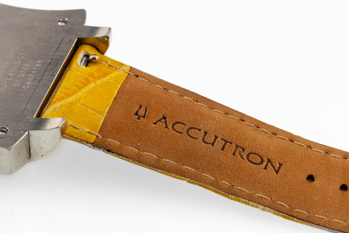 Correa de cuero amarilla Accutron original con cierre de acero inoxidable