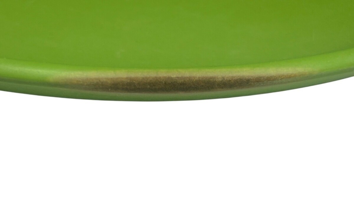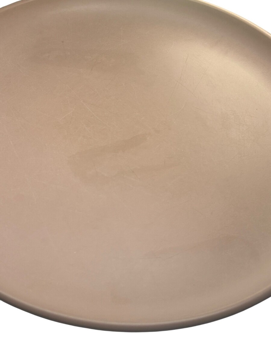 Edge wear and burnt discoloration on one plate and minor surface scratches on all plates.