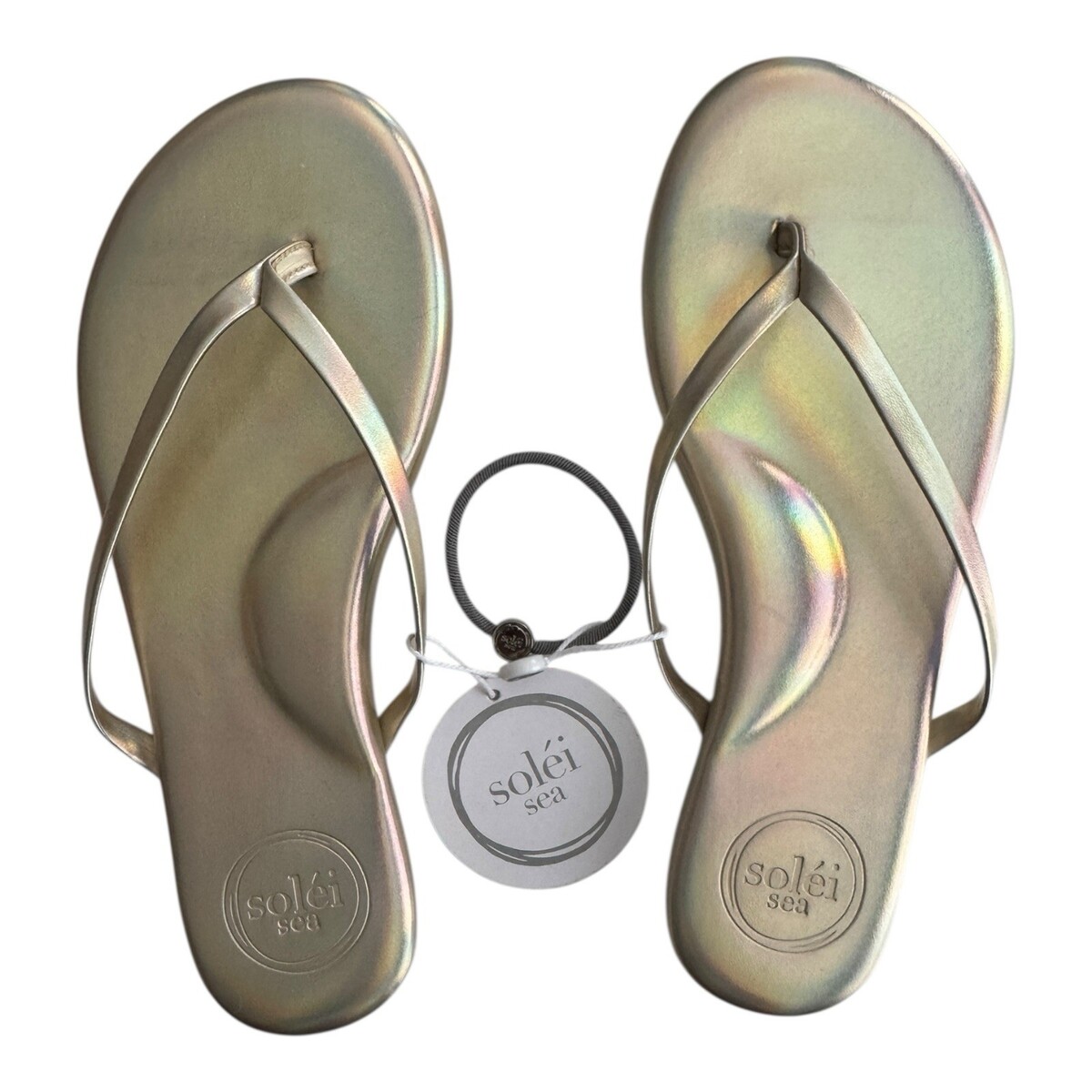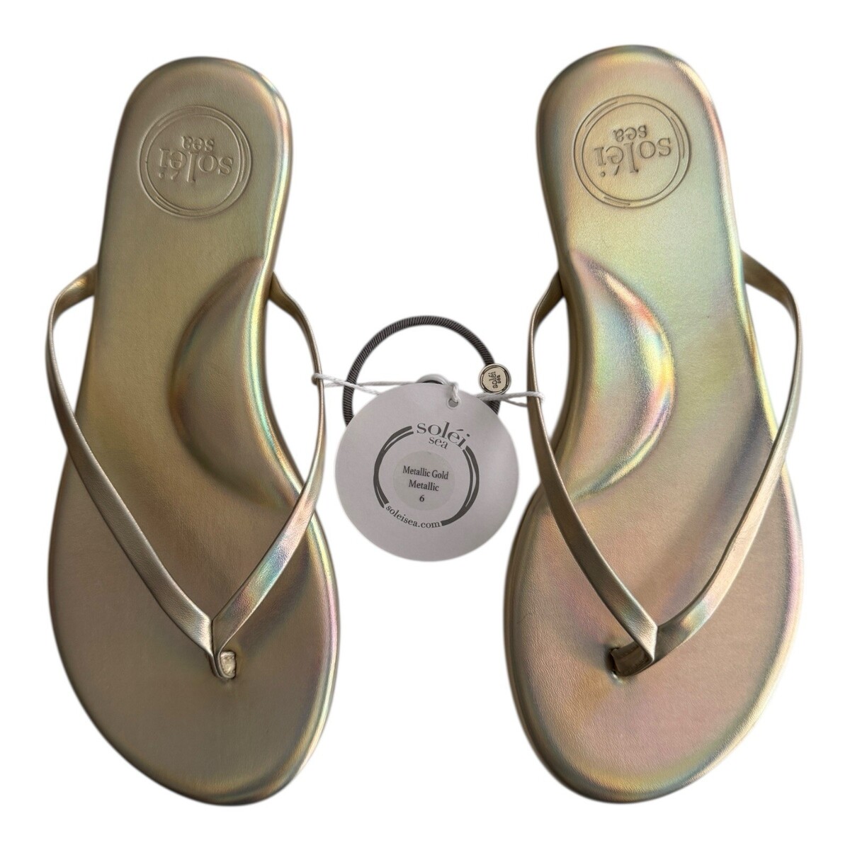 FREE PEOPLE SOLEI SEA Sz 6 (5-5.5) Around Town Metallic Gold Flip Flop Sandal