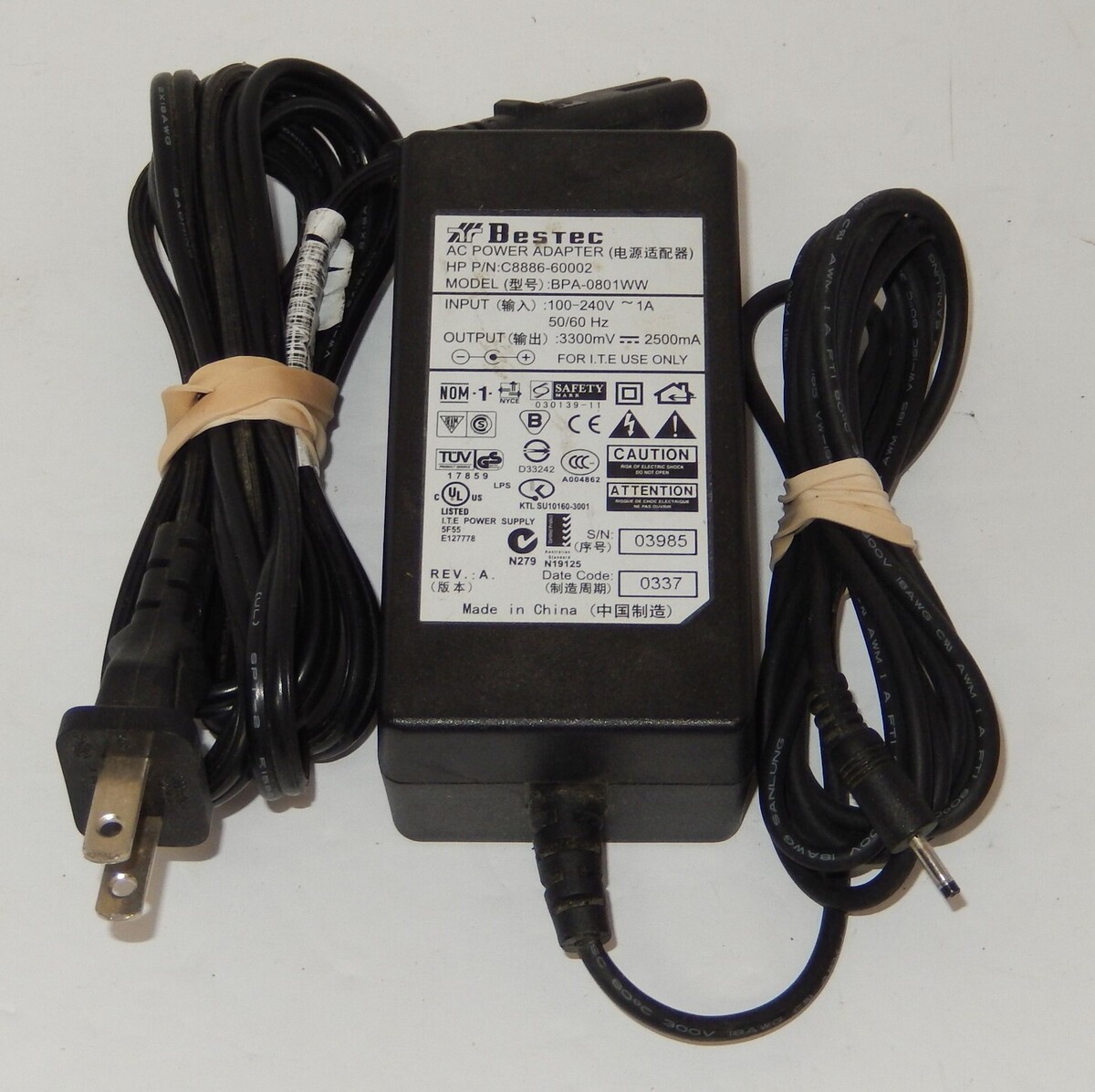for sale is for a Bestec AC Adapter Power Supply Model BPA-08011WW. Tested and Works. this listing is ONLY for the part that is pictured. Please see pictures prior to purchasing. Please ask any and all questions prior to purchase. Fast same or next day shipping with Delivery Confirmation.