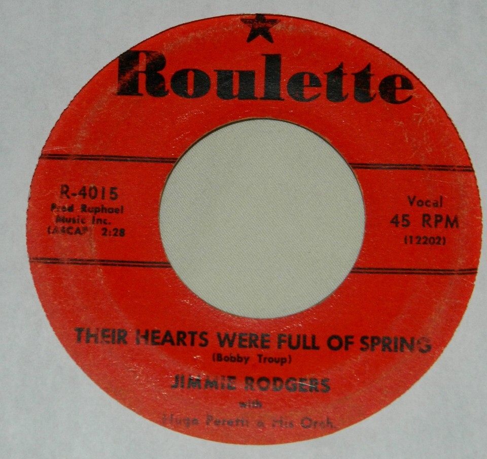 Jimmie Rodgers on Roulette Label / 45 rpm / Honeycomb /Their Hearts Were Full...
