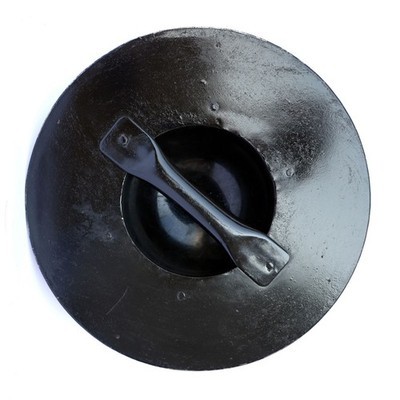 Although the existence of buckler is not very well known, it was very widely used in its day. It was a simple yet effective weapon that when combined with a sword, made a swordsman a much more dangerous opponent. There were five primary uses which recognized the bucklers small size and maneuverability: Hand protection, Deflector, Blinder, "Metal fist", Binder. Its small size was very useful in deflecting the blow of swords or large fighting knives. Constructed of 16 gauge iron with a polished finish the Infantry Battle Ready 16g Buckler Shield would give the user a clear advantage over other opponents. This simple round buckler has a handle located in the back and when combined with a shortsword you can clearly do some damage. From completing a costume to actual combat training this buckler will not disappoint.