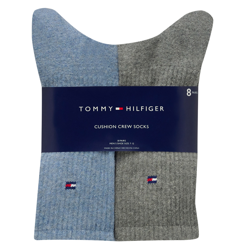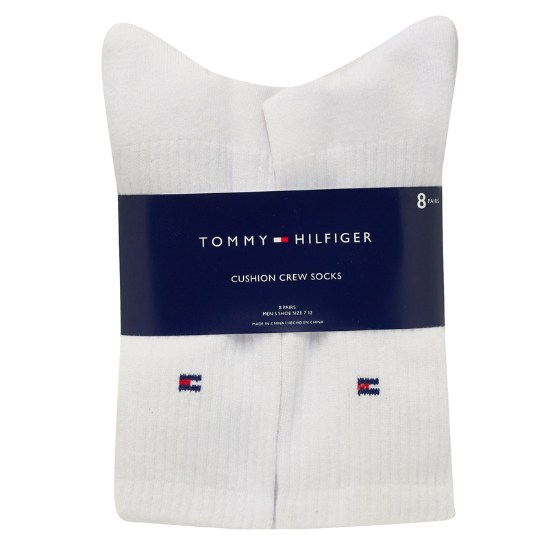 Tommy Hilfiger Men's Crew Socks 8 Pair Pack Combed Cotton Arch Support Logo New