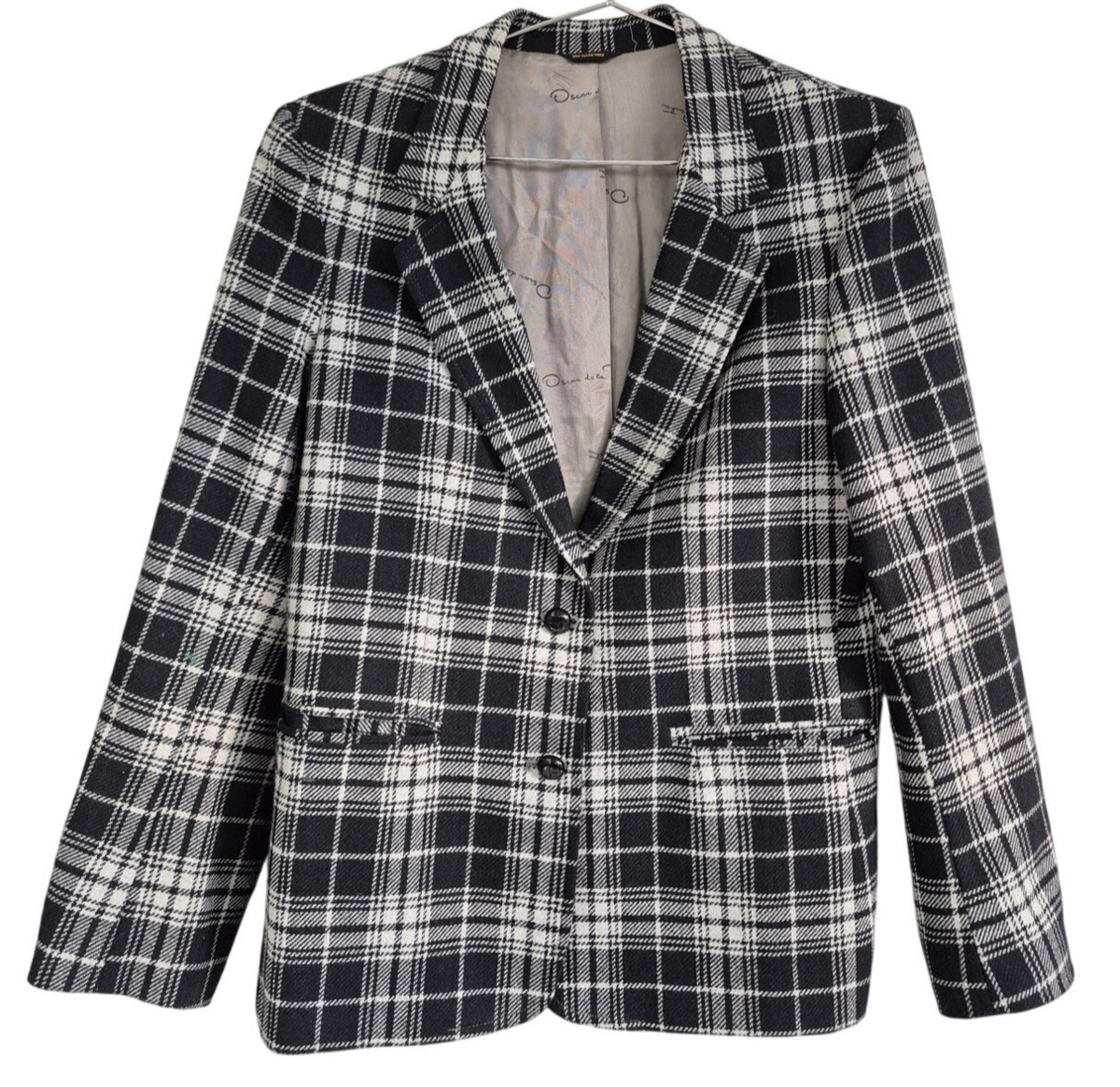 VTG 90s Oscar de la Renta Plaid Wool Blend Blazer Juniors 11/12 Modern 6/8