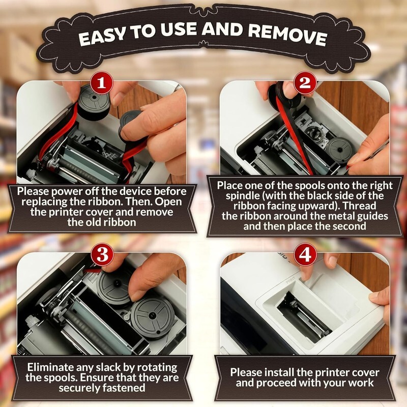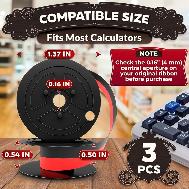 Size Contents: The set includes 3 Sharp EL-1197PIII calculator ink ribbon. Each adding machine ribbon red/black is 18 feet long (5.5 meters), 0.5 inch wide, with a spool diameter of 1.37 inch