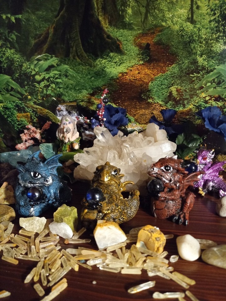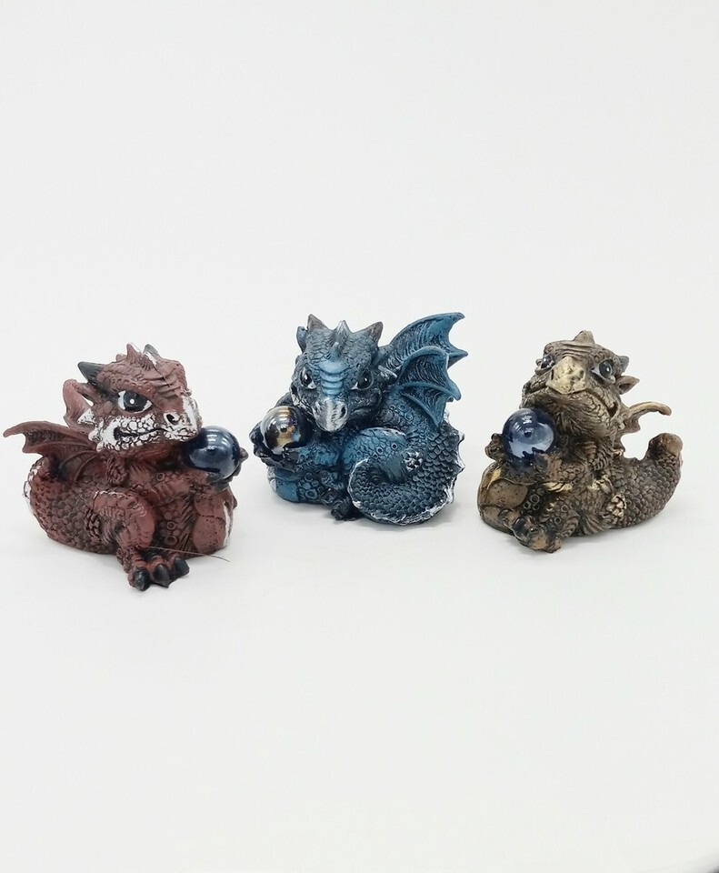 Blue, Red & Brown Medieval Mini Dragon Figurines with Crystal Set of 3 H 2.5 in