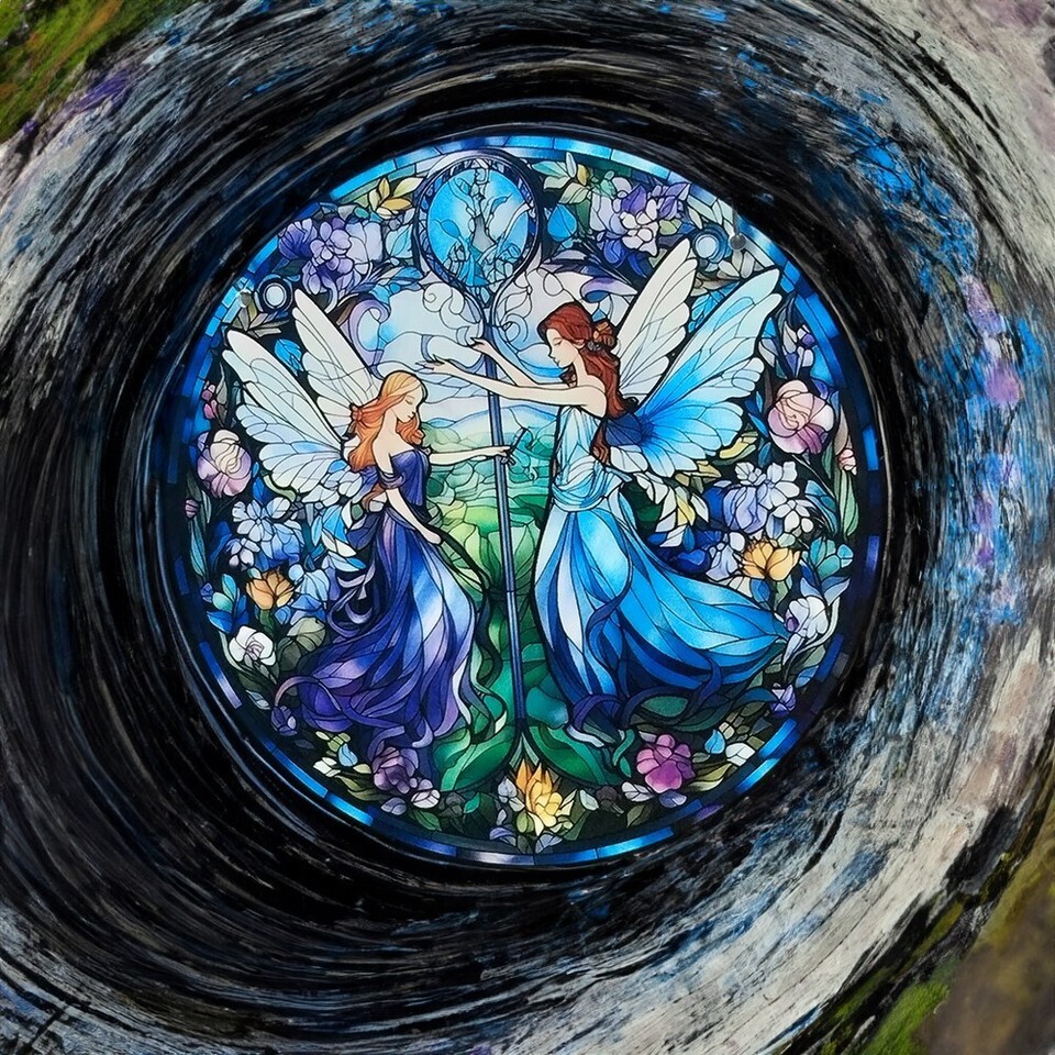 Acrylic Hanging Sun Catcher with two Fairy Friends Wall Decor Diameter = 5.9 in