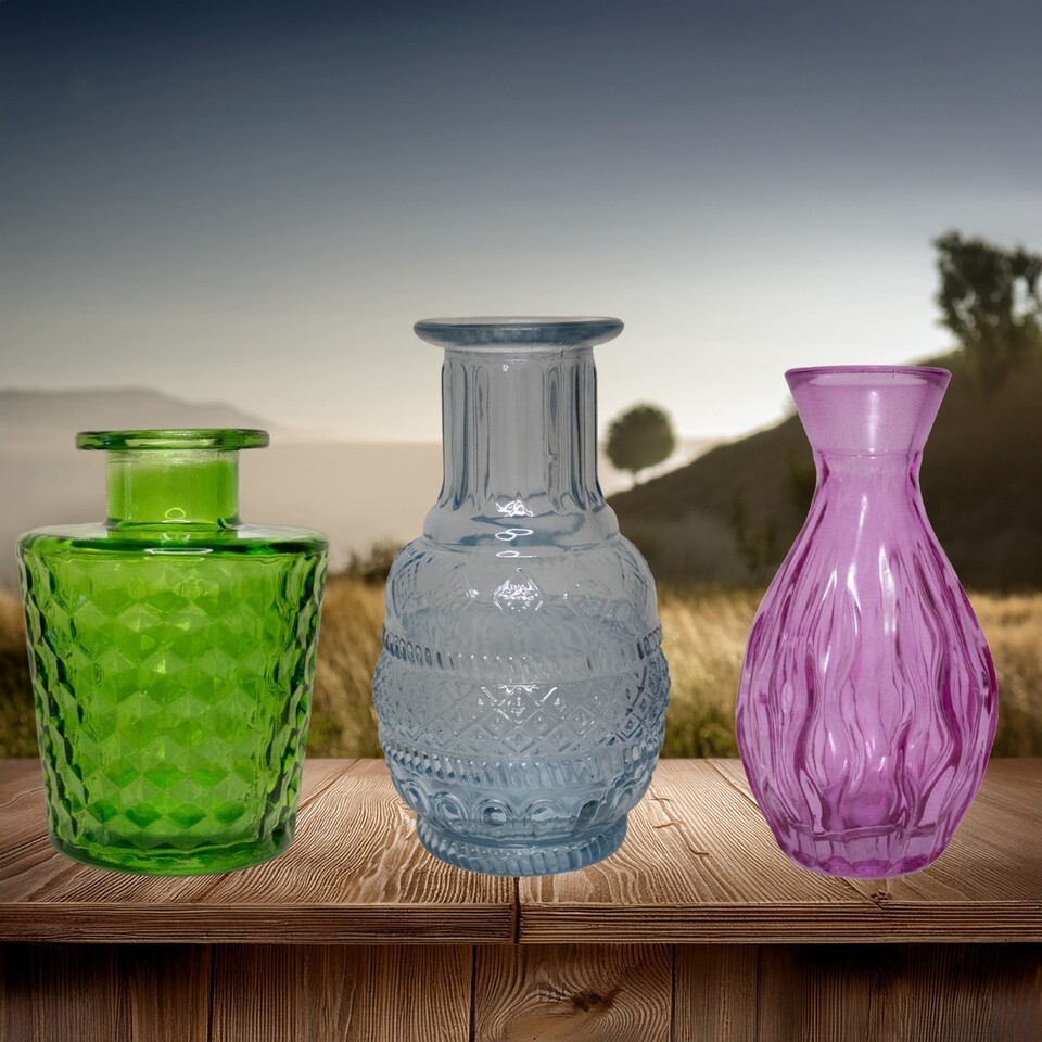 Vintage Style Blue Colored Glass Bud Vase - Small Decorative Vase (5.25 Inch)