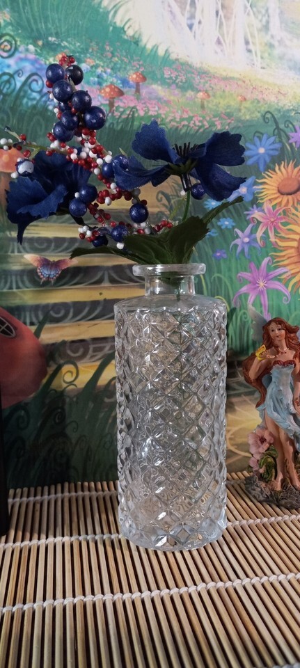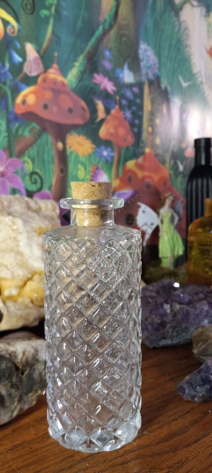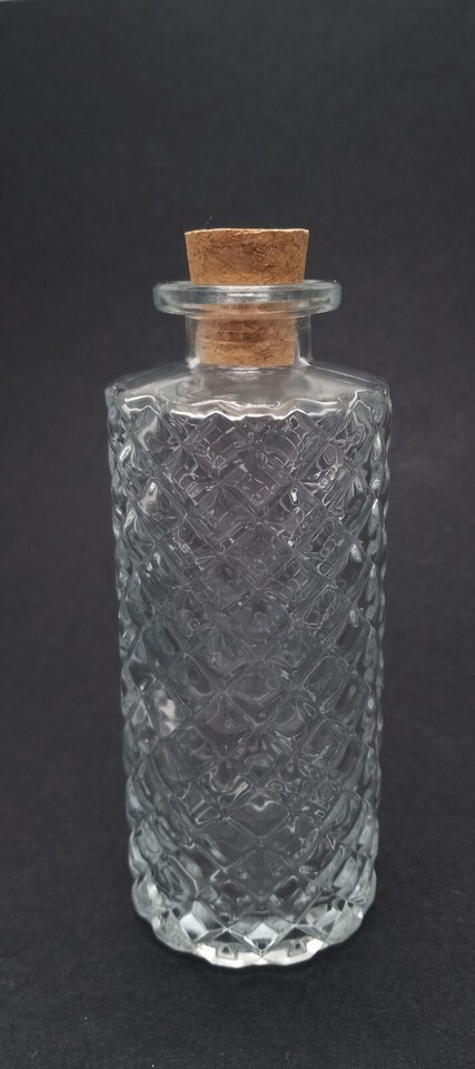Clear Diamond Cut Vintage Style Glass Round Decorative Jar with Cork H = 5.75 in