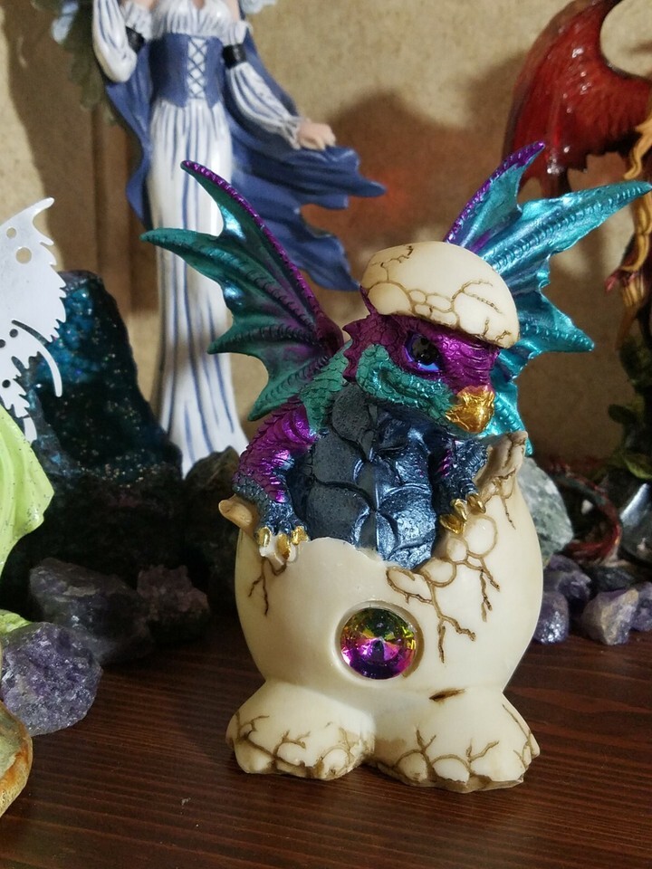 Baby Blue and Purple Dragon Hatching From an Egg Collectible Figurine 71664