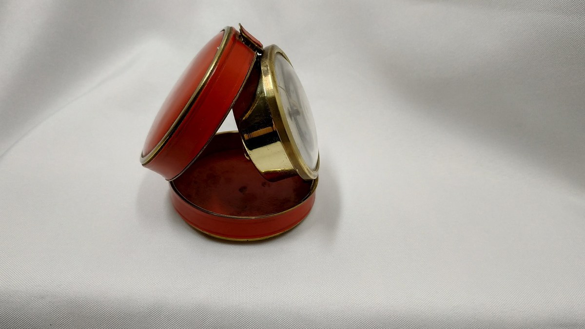 Aesthetic: The clock is in good vintage condition with a beautiful natural patina on the brass. The red lacquer shows minor signs of age (slight surface wear), which confirms its authentic vintage character.