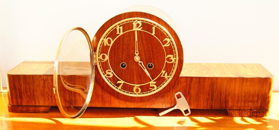 Art Deco Aesthetics: The case is finished in a beautiful walnut veneer with a striking grain. The silvered dial, original stylized hands, and brass bezel perfectly capture the 1930s European elegance.
