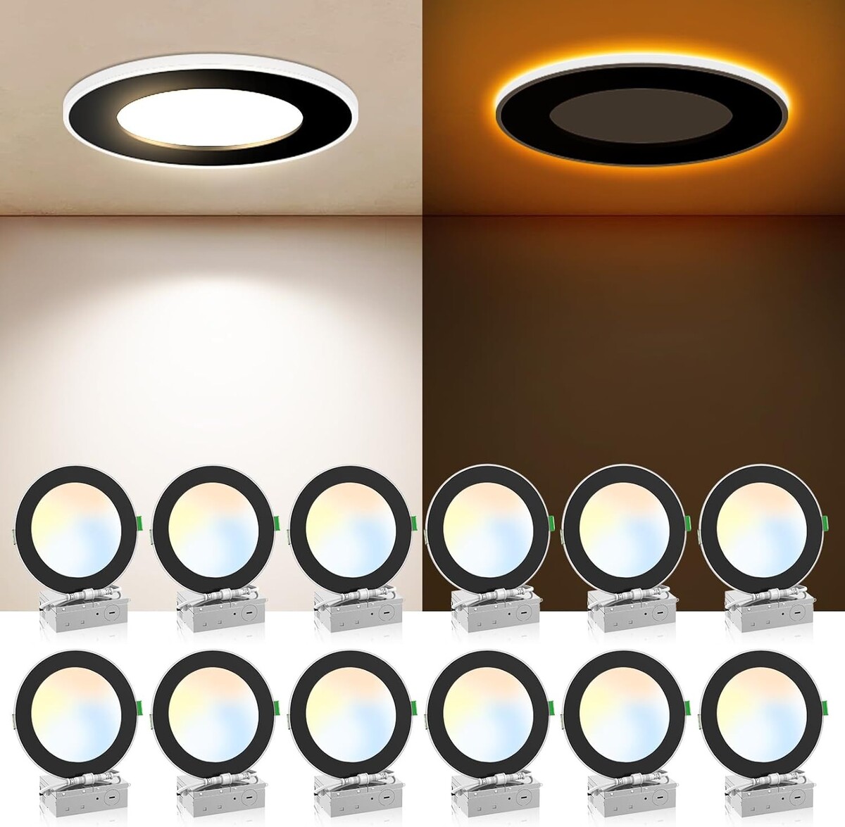 12 Pack 6 Inch 5CCT LED Recessed Ceiling Light with Night Light 2700K-5000K