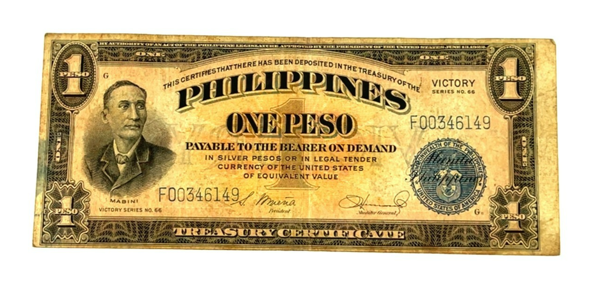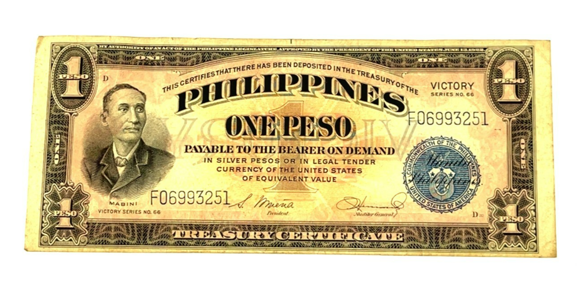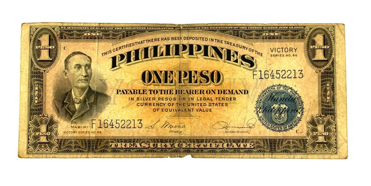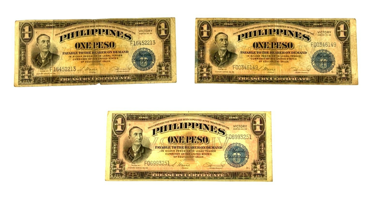 Lot of 3 One-Peso Treasury Certificate Notes - Victory Series No. 66