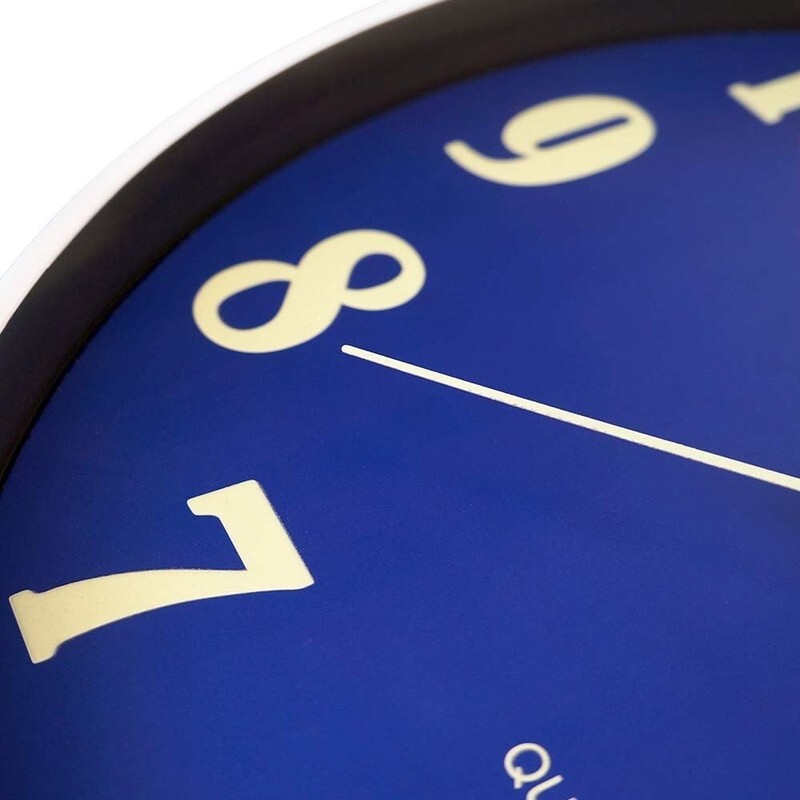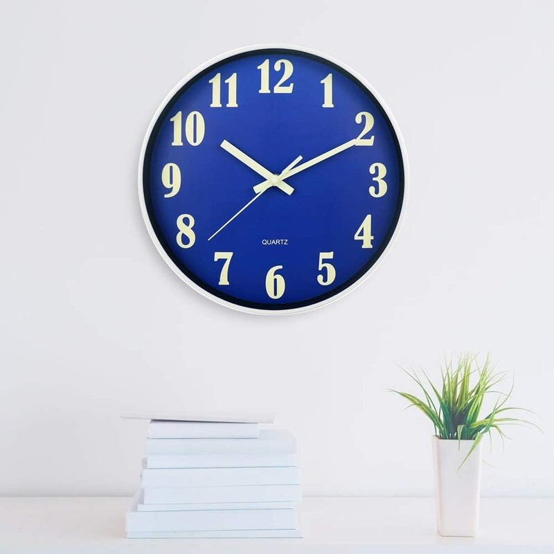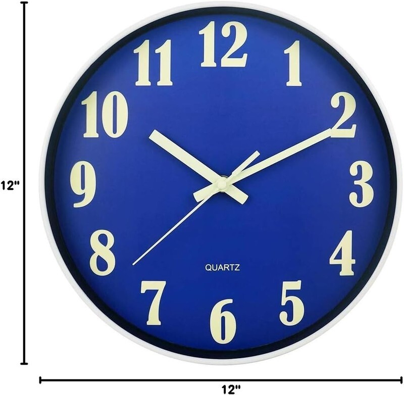 ? ?Easy to Read? Design with large numbers contrast to the blue face, which makes reading the time easy from any angle. Awesome modern look wall clock perfect for dining rooms, living rooms, family rooms, bedrooms, study room,kitchen, office and meeting room.