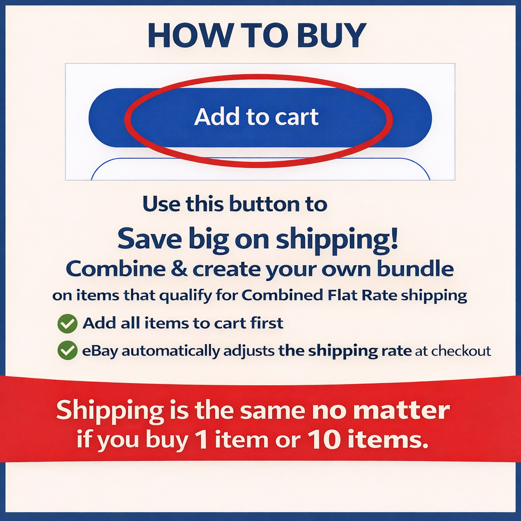 Because does not educate buyers on how to take advantage of Combined Shipping we have to. so in order to take advantage of our combined shipping rates instead of using the "buy it now" button please use the "add to cart" button for each of our items you want/plan to buy and combine into one purchase once you have finished adding all the items you want to your cart then go into your cart and you should be able to Pay for all the items together and receive our combine shipping discount. The Majority of our items you Pay one Shipping price for the First item and then there is no additional shipping cost for each additional item purchased