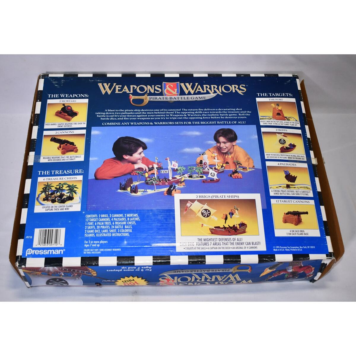 Ahoy, mateys! Get ready for an epic adventure with this vintage Weapons and Warriors Pirate Battle Game from 1995 by Pressman! This game is ready to bring hours of swashbuckling fun to your home. I don't know if it's all there or not but it looks like a lot of the pieces (if not all) are there :-).