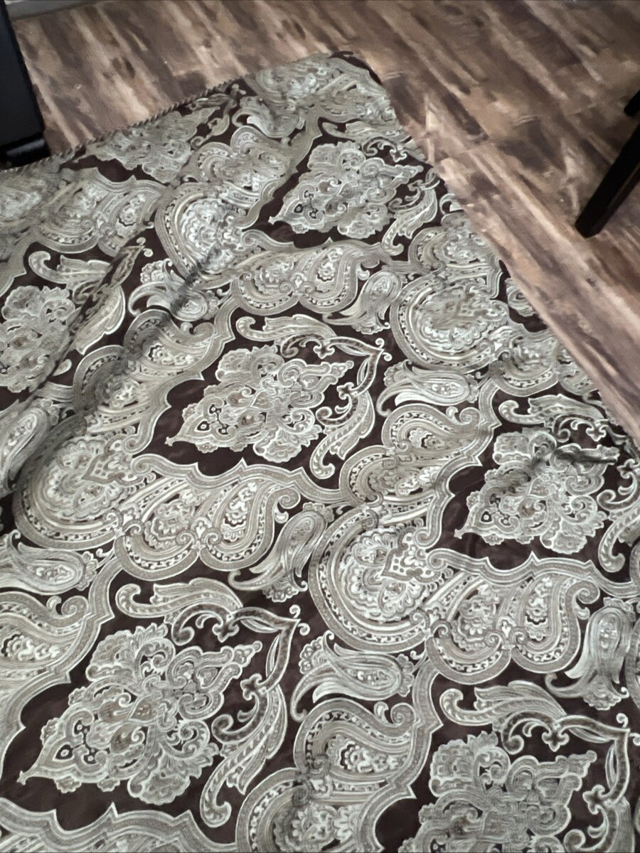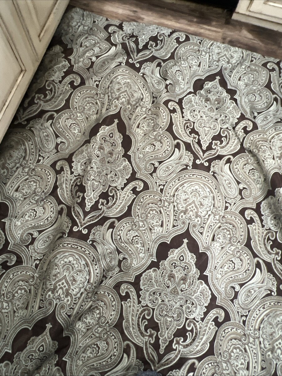 CROSCILL ROYALTON Chocolate & Blue QUEEN COMFORTER SET Damask