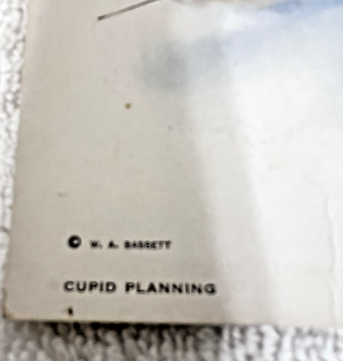 Vintage Cupid Planning WA Bassett Reinthal Newman Publishers Divided-Back Valentines Postcard. Slight bumping to corners, a small bend/crease at bottom Overall ok condition.