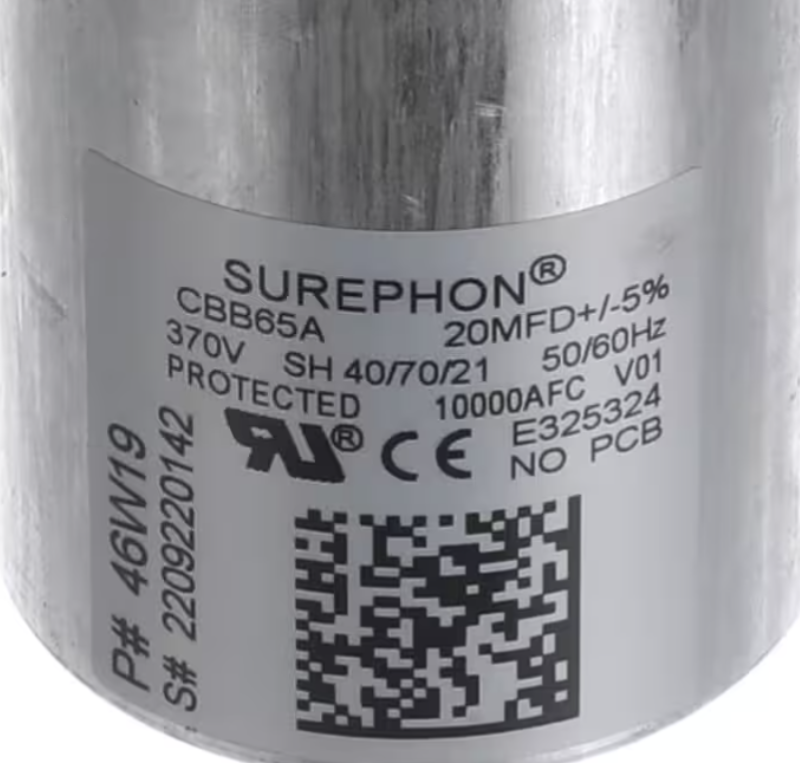 Lennox 46W19, 2209220142, Capacitor, Run, 20MFD, 370V, 50/60HZ, Round