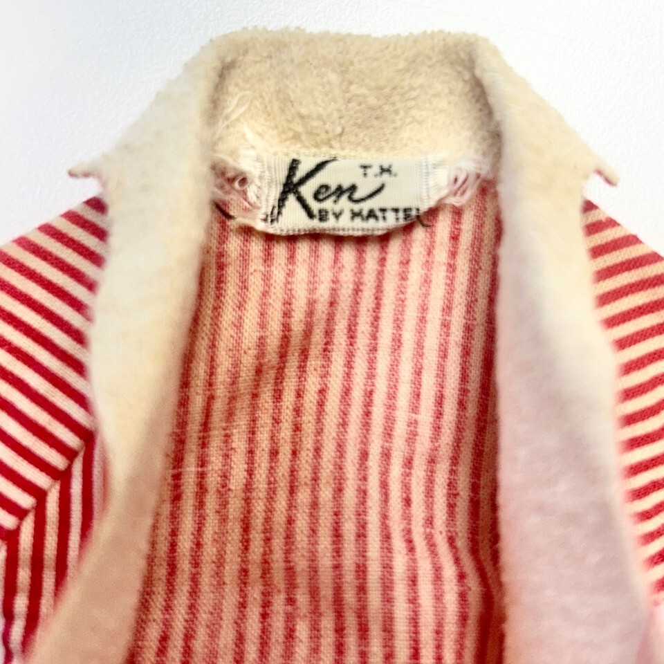 Vintage Barbie Ken Doll 1960’s Red & White Striped Beach Shirt #750 By Mattel