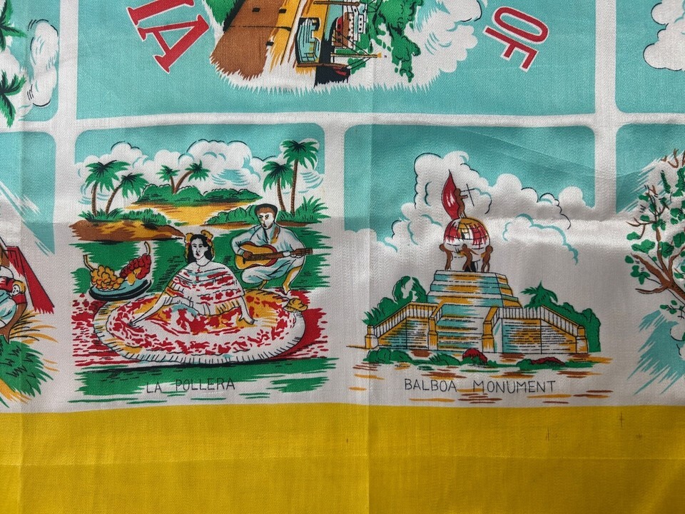 Vintage Panama Souvenir Scarf Wrap Shawl Travel 31 X 33 Colorful Plaza Santa Ana