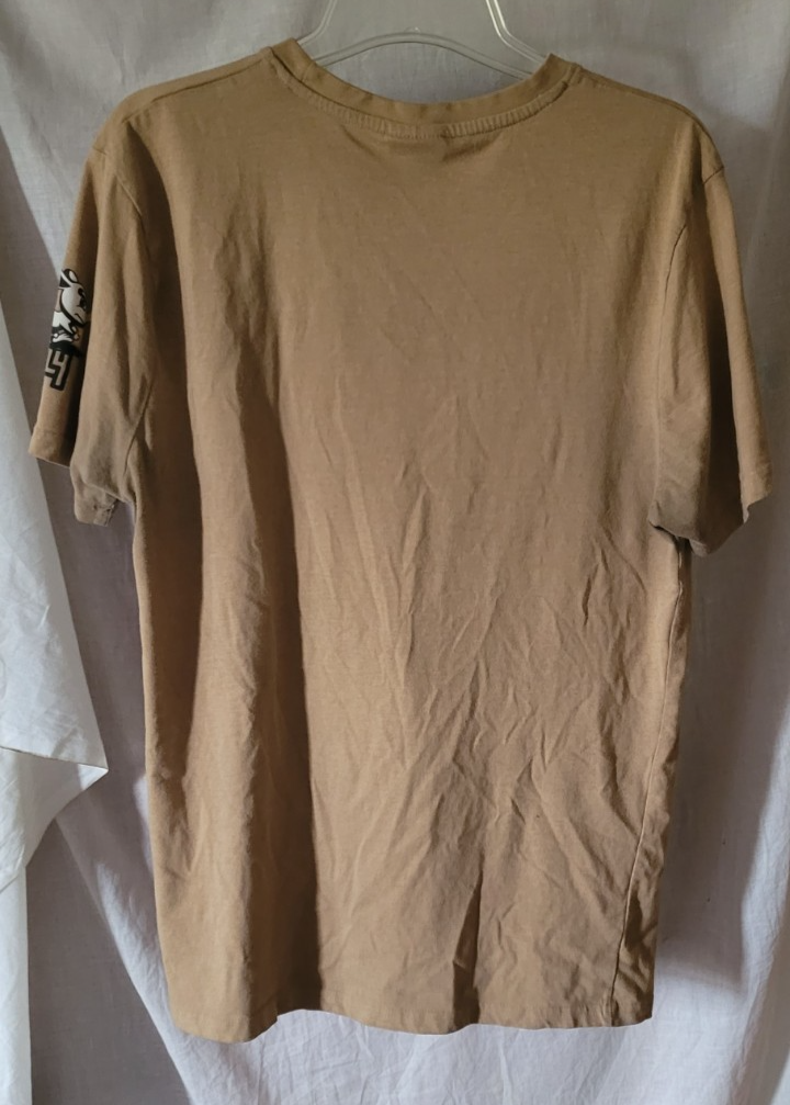 This t-shirt is in good used condition. There are no holes or stains that I found. The large GTL4 on the front does show wear from drying. The size is Large. Measurements are approximately: Length: 29 inches from shoulder to hem. Pit to Pit: 21 inches. Shoulder to Shoulder: 18 inches.