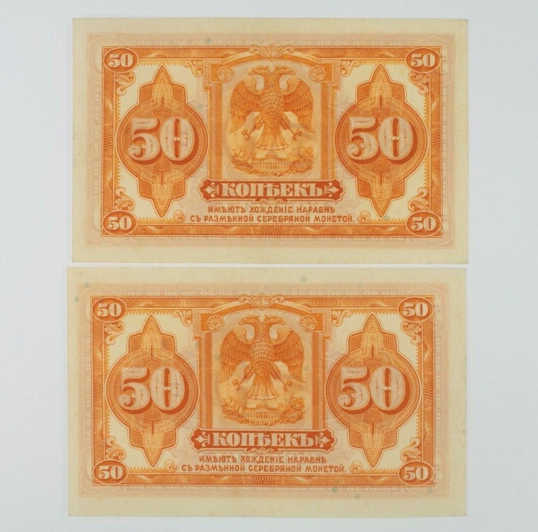 1918 Russia 50 Kopek 2-Notes Set // AU UNC // Siberia P#S828