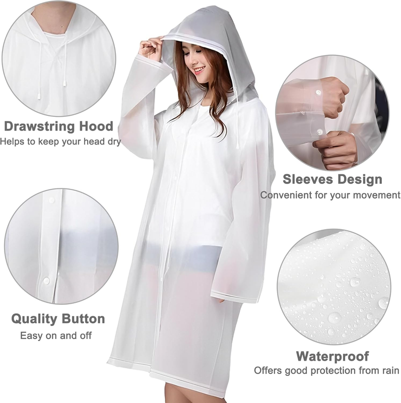 Our reusable raincoats are made with high quality EVA material, which is non-toxic, waterproof and durable enough to keep you dry even on the rainy day.