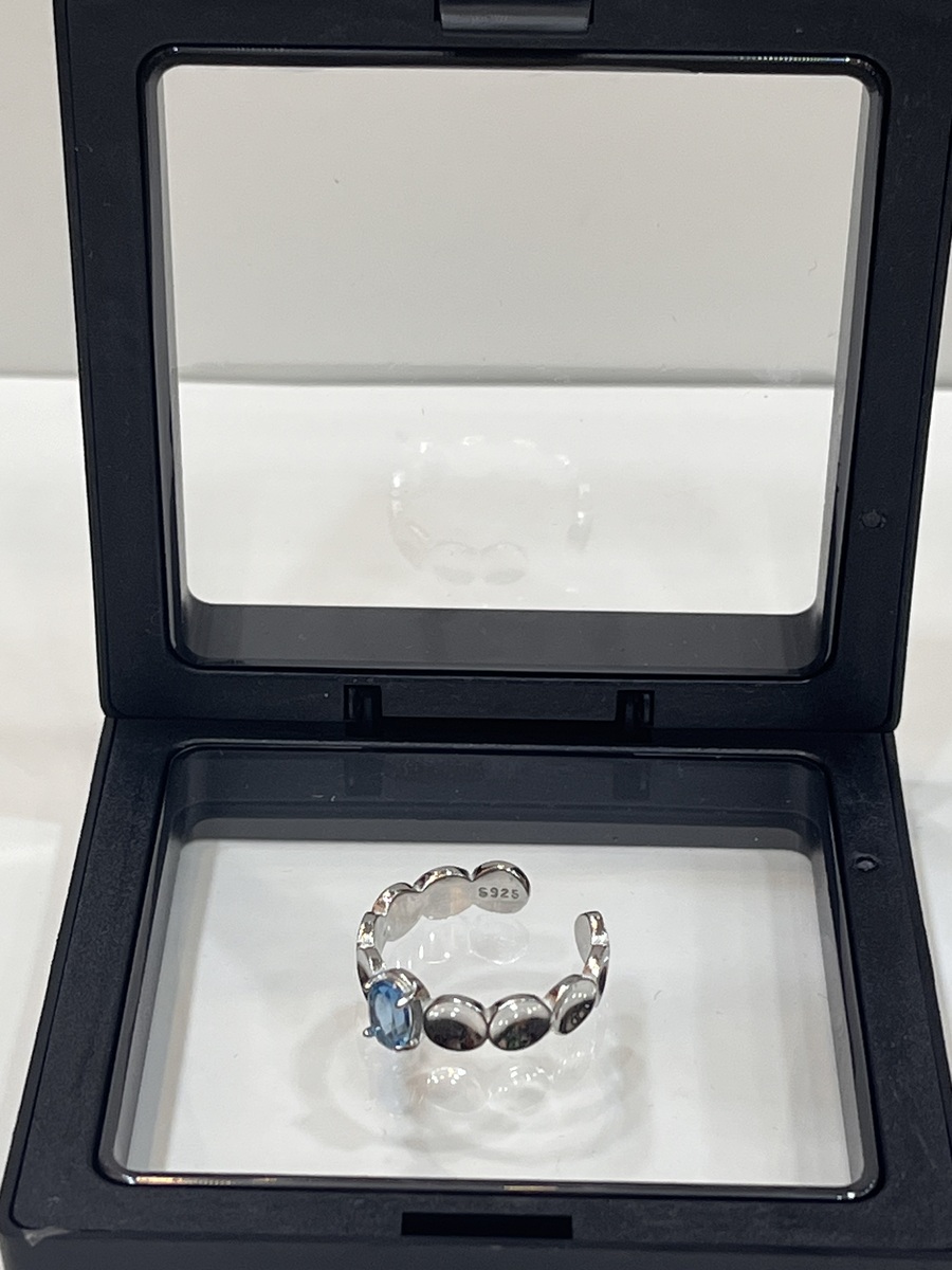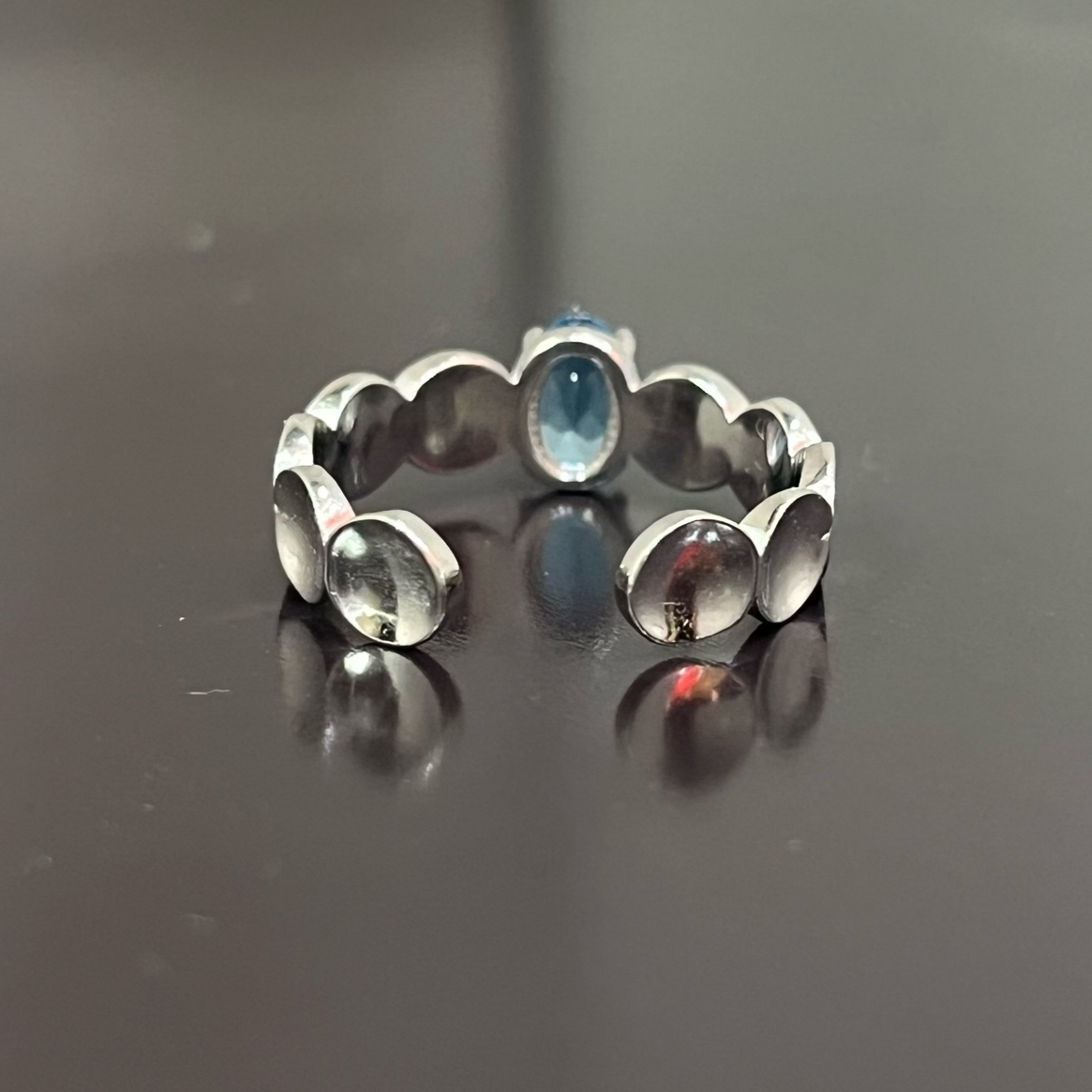 Swiss Blue Topaz Moon Phase Ring 925 Sterling Silver Oval 4x6mm Adjustable Gift