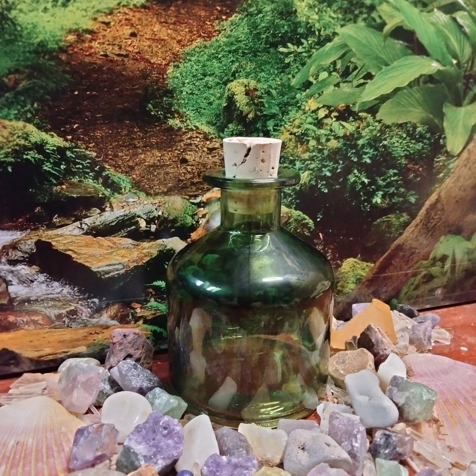 Small Green Colored Round Glass Vase Diffuser with Cork H = 5 Inch