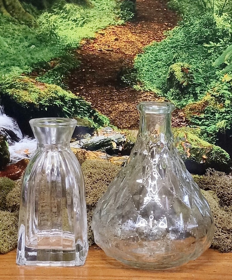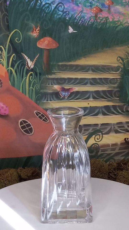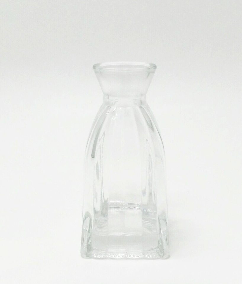Mini Clear Ribbed Style Glass Vase Collectible Square Bottle H = 4.25 in