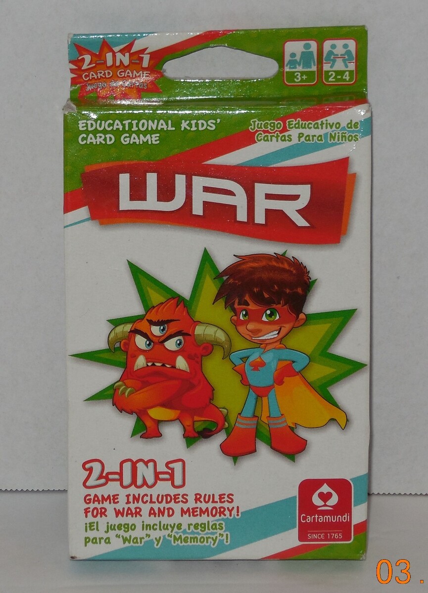 For Sale is a Cartamundi 2 in 1 Educational Kids Card Game War and Memory 100% Complete. comes with the Pieces as seen in the pictures provided what you see is what you will receive. Please ask Any and All Questions prior to purchasing. Fast Same or Next day shipping with Free Delivery Confirmation within the U.S. Payment Due within 7 days of purchase (if you need more time please let us know In advance) we love to combine shipping is always a Yes and Most of the time Additional Items Ship for free.