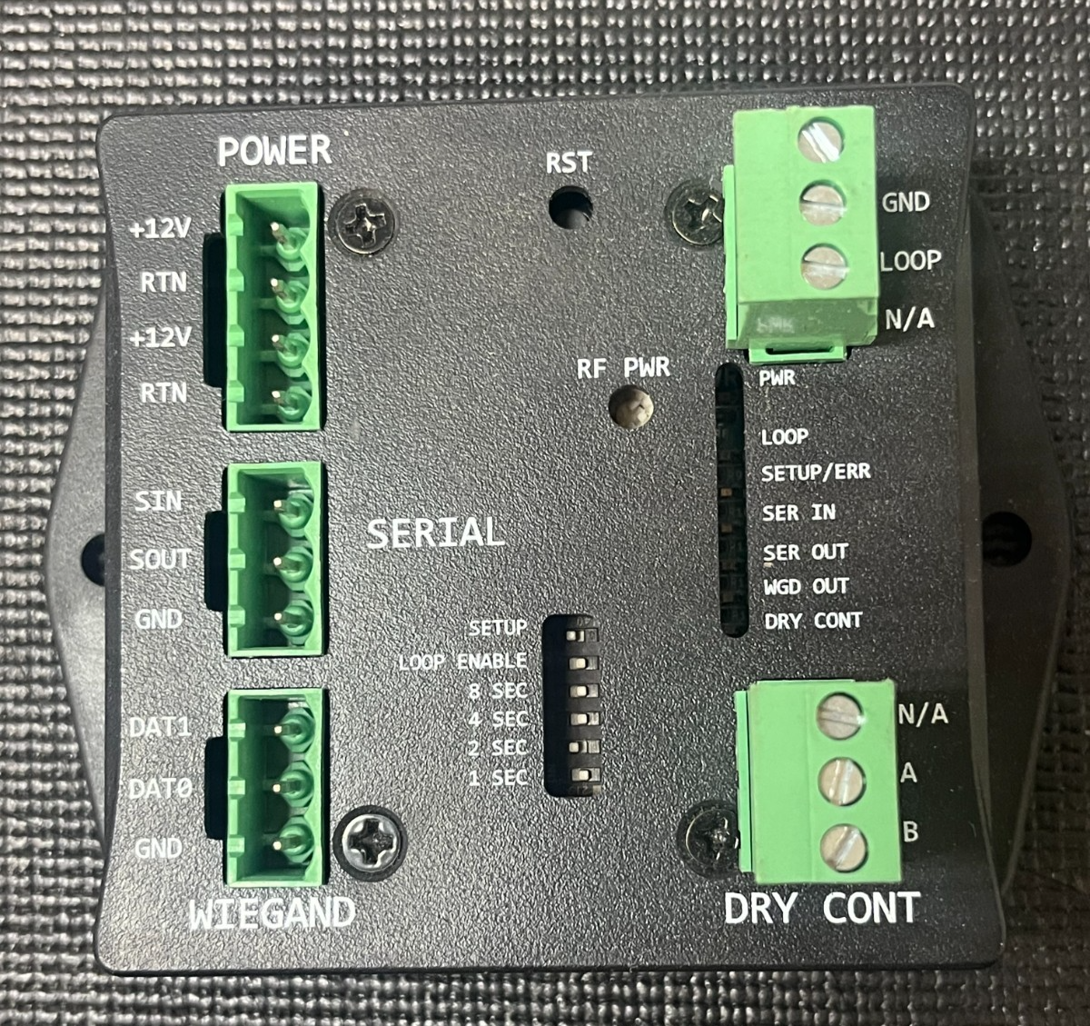 - DRY CONT: GND, LOOP, N/A and N/A, A, B