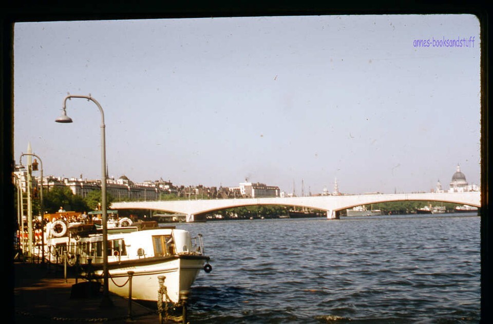 35 mm color slide * 1950s ENGLAND London WATERLOO Bridge buildings ship