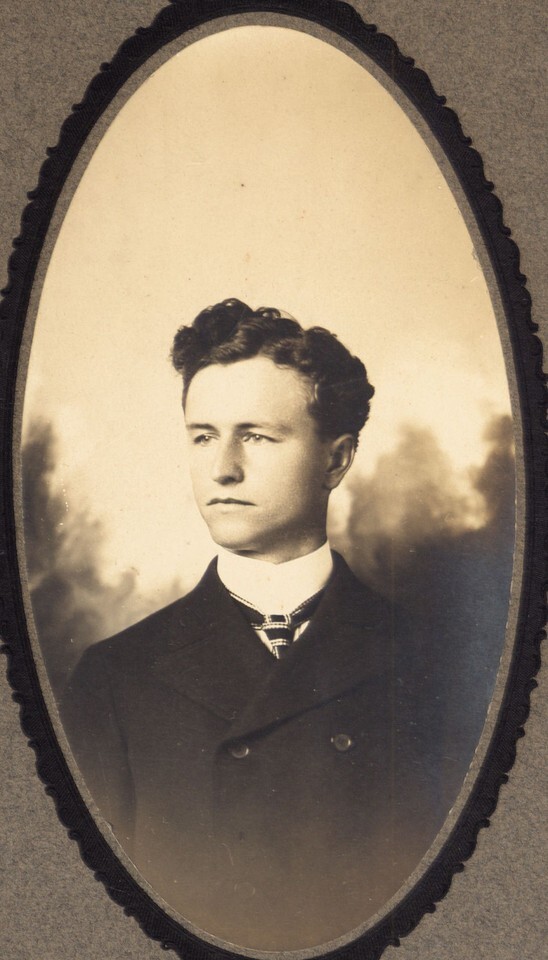 CABINET CARD PHOTO * 1901 Oval Young MAN on back G.A. Axlme Principal sp?