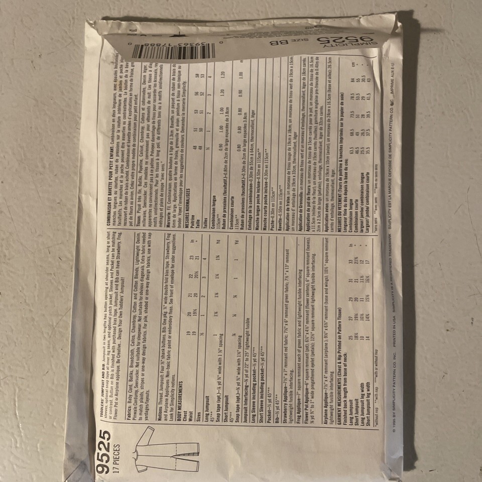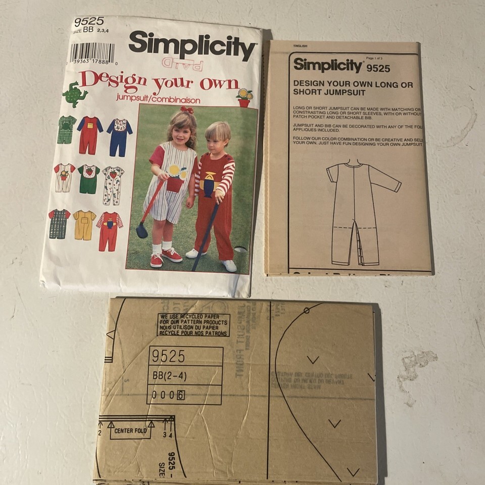 Vintage Simplicity SEWING Pattern Toddler Jumpsuit 9525 Design Your Own Size 2-4
