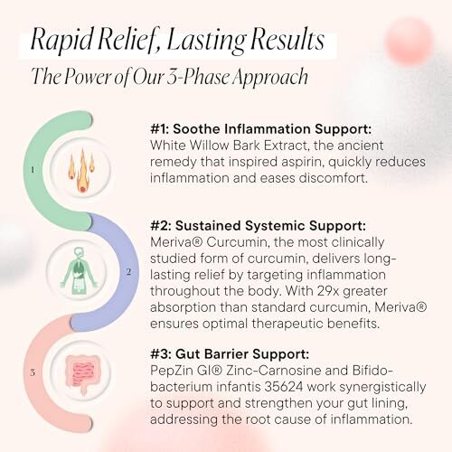 Inflammation Pro targets the issue at its source. With a unique 3-phase approach and clinically-proven ingredients, Inflammation Pro helps to soothe inflammation, support gut lining integrity, and unlock your body's natural potential.