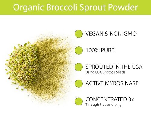 ACTIVE MYROSINASE - Freeze-dried raw to preserve active Myrosinase enzyme. Each batch is 3rd party tested to ensure the myrosinase is active. GLUCORAPHANIN (Sulforaphane Glucosinolate) - 3rd Party tested for Glucoraphanin content. Glucoraphanin turns into Sulforaphane when Myrosinase is present and water is added. USA GROWN - Sprouted and Freeze-dried in the USA. Certified Organic. Non-GMO. TASTE - Mildly spicy. Similar to fresh broccoli sprouts. EACH POUCH - 36 scoops. Each scoop of powder is equivalent to 1/4 cup of fresh organic broccoli sprouts. INGREDIENTS - Organic Freeze-dried Whole Broccoli Sprout Powder (includes the sprout and seed portion of the sprout). 100% Pure. No additives.