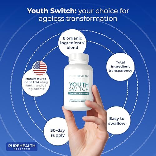 Longer, Healthier Lifespans - Ever Dream of Eternal Youth? The Premium Ingredients In Youth Switch Anti Aging Pills Support The Biological Mechanisms That Can Promote Longevity. Doctor-approved Youth Switch Stem Cell Supplements Support Telomere Growth, Promote Immunity, and Help Stimulate New Cell Growth. Extends Telomeres Naturally - The Length of Your Telomeres Determines Your Biological Age?the Shorter Your Telomeres, The Older You Look and Feel. But Studies Show Astragalus and L-Citrulline Telomere Supplements Can "Rewind Time" At The Cellular Level By Lengthening Telomeres Safely and Naturally. Stimulates New Cell Growth ? This Premium Stem Cell Supplement Contains OKG, a Key Building Block For Amino Acids Like Glutamine, Arginine, and Proline. Proline Helps Build Collagen, Regenerate Cartilage, and Can Help The Gut Lining. Glutamine Supports Healthy Muscle Mass, Protects The Intestinal Tract, and Boosts Immunity. And Arginine Helps Improving Circulation For Better Oxygen and Nutrient Delivery. Made In The USA - Youth Switch Anti-Aging Capsules are Manufactured In A GMP-certified Facility and are 100% Drug-free, Gluten-free, and Non-GMO. Every Batch of Our Stem Cell Supplements are Tested To Ensure Safety, Potency, and Freshness. Take These Premium Cell Rejuvenation Capsules With Confidence! Premium Anti-Aging Supplement For Women - Youth Switch Is PureHealth Research's Signature Skin Supplement and Cell Restore Formula. With Youth Switch Anti-aging Vitamins You Can Have Dramatically Brighter, More Youthful-looking Skin. With These Premium Skin Care Pills, Now You Couldan Look The Way You Did 10, 15 Or Even 20 Years Ago.