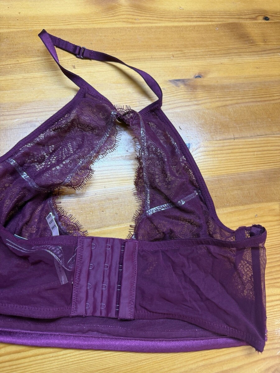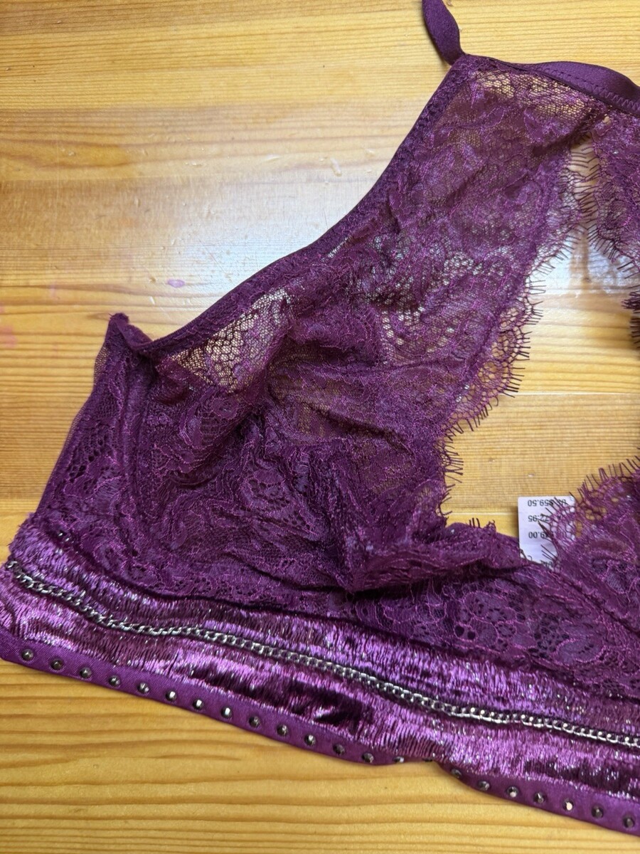 NWT Victorias Secret High Neck Med Sexy Lace Stud Bralette Maroon Velvet Halter