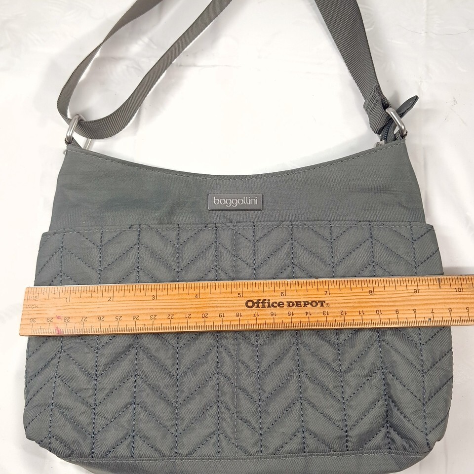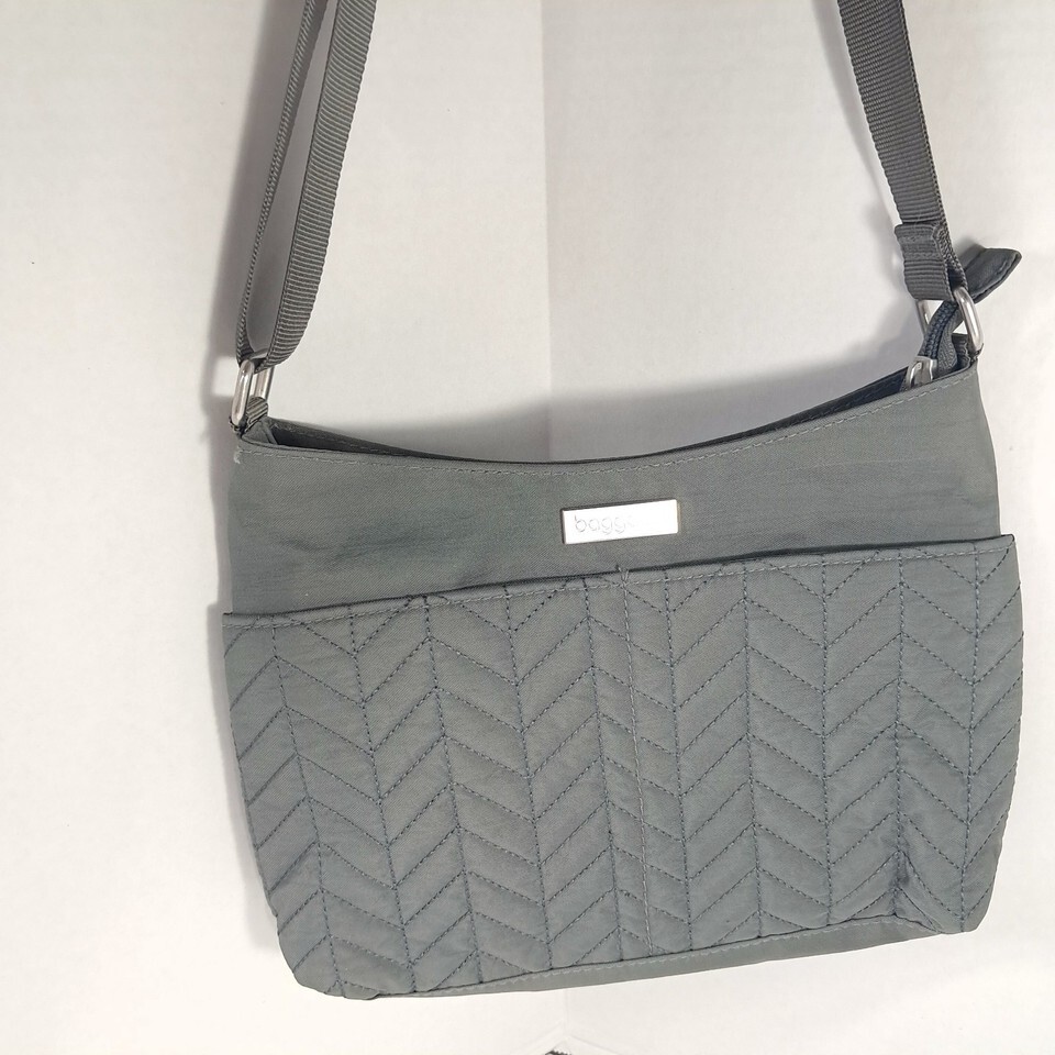 Baggallini mini bag purse grey gray quilted chevron travel crossbody minimalist
