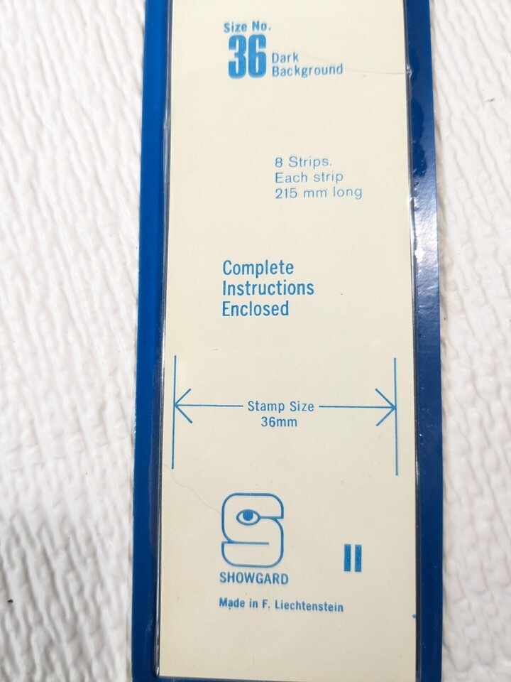 NEW Showgard Stamp Mounts size #36 dark background black 8 strips Vintage