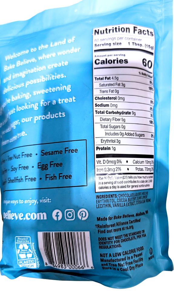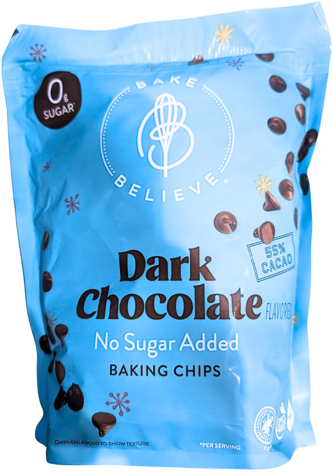 Bake Believe Dark Chocolate Baking Chips No Sugar Added 2 Lb Bag |