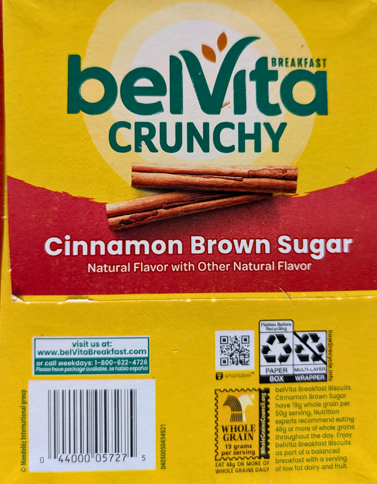 Belvita Crunchy Breakfast Cinnamon Brown Sugar Biscuits 30Count EXP 10/2026